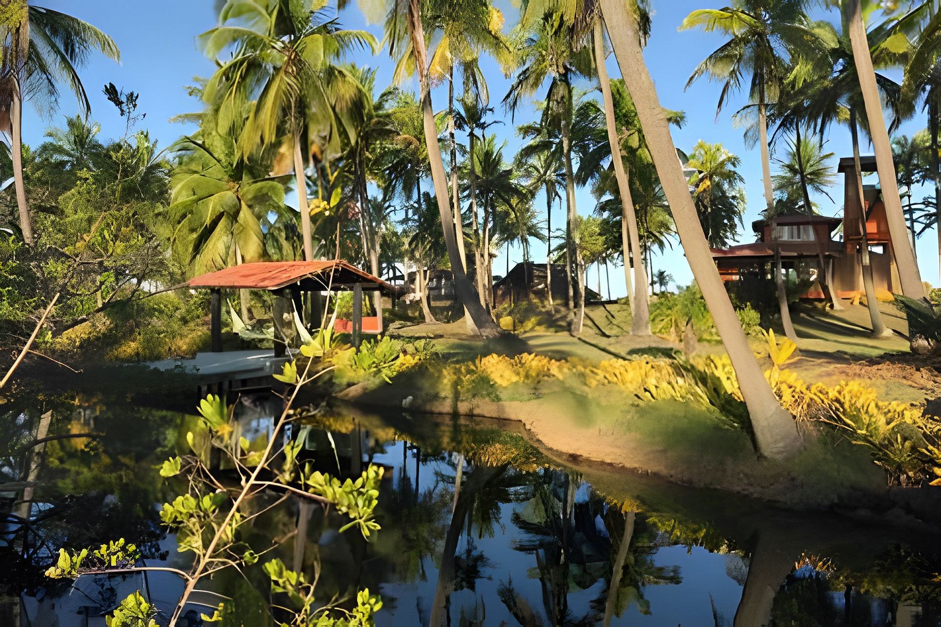 Para quem deseja a experiência de ficar à beira do mar, com todo o conforto, a Casa Capela oferece uma hospedagem de alto padrão, em meio ao coqueiral e com um riozinho no fundo, ótimo para tomar um banho. A propriedade é composta por uma casa principal e um chalé, ambos prontos para acomodar famílias ou grupos de amigos que querem curtir a praia com estilo.