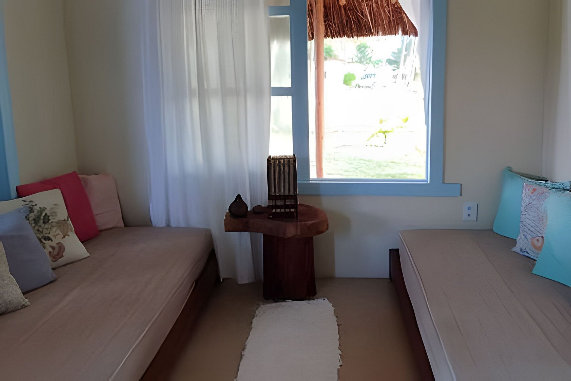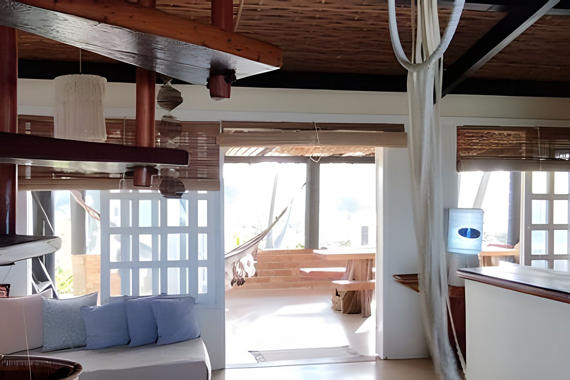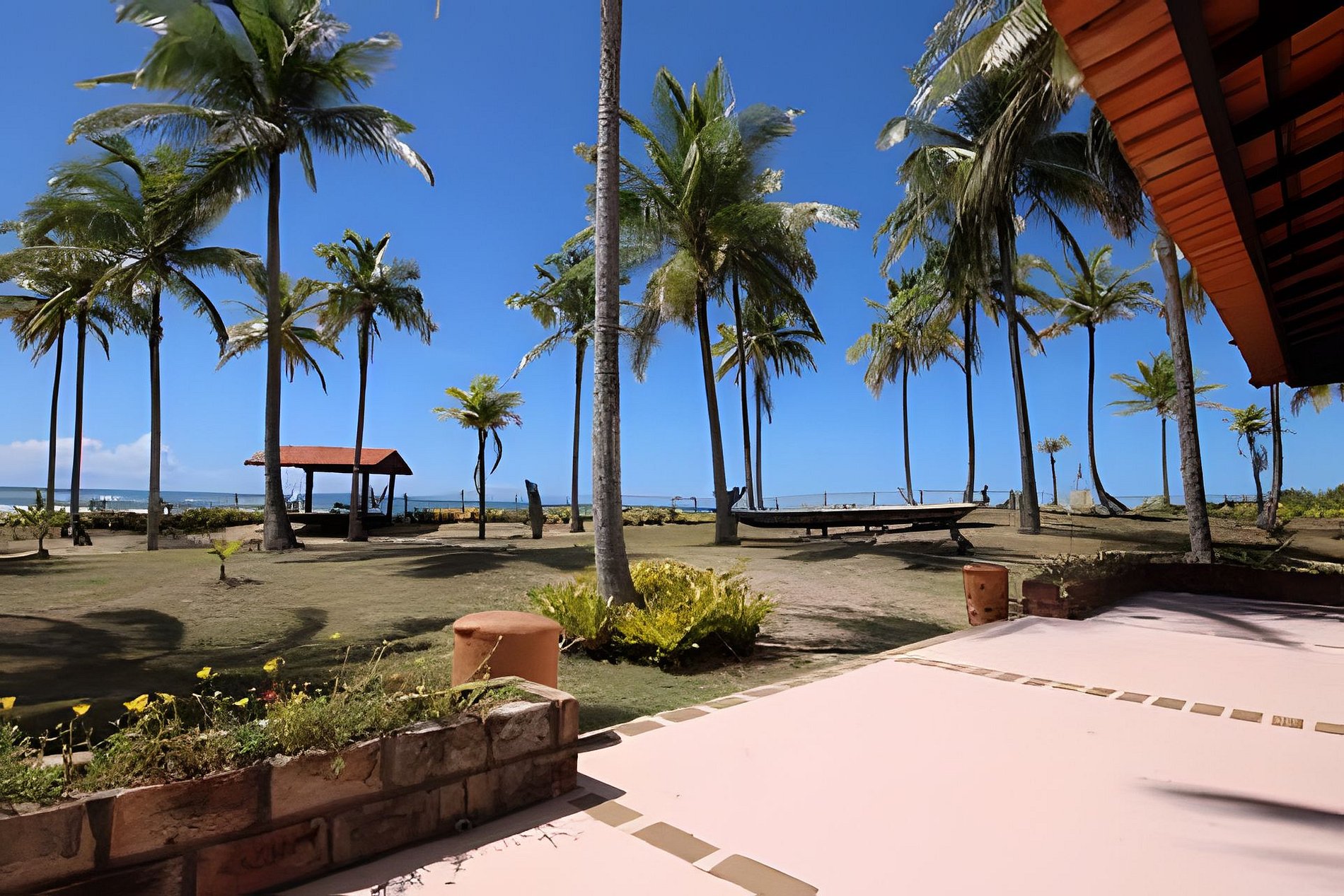 A casa Principal oferece um quarto no segundo andar. Na parte térrea da casa temos duas suítes. A sala integrada com a cozinha e um banheiro completo. Varanda na frente do mar e a outra com mesa para refeições com vista do coqueiral e para o rio, delicioso para banho. E temos na propriedade o Chalé Casa Capela, um quarto no andar superior No térreo saleta, banheiro e varanda. Redes nas varandas, nos quiosques A casa por sua proximidade do mar é climatizada pela constante brisa. Uma maravilha! Oferece serviço pela manhã e limpeza todos os dias, menos domingo. Roupas de cama e banho de algodão com trocas disponíveis. Os caseiros vivem na propriedade.