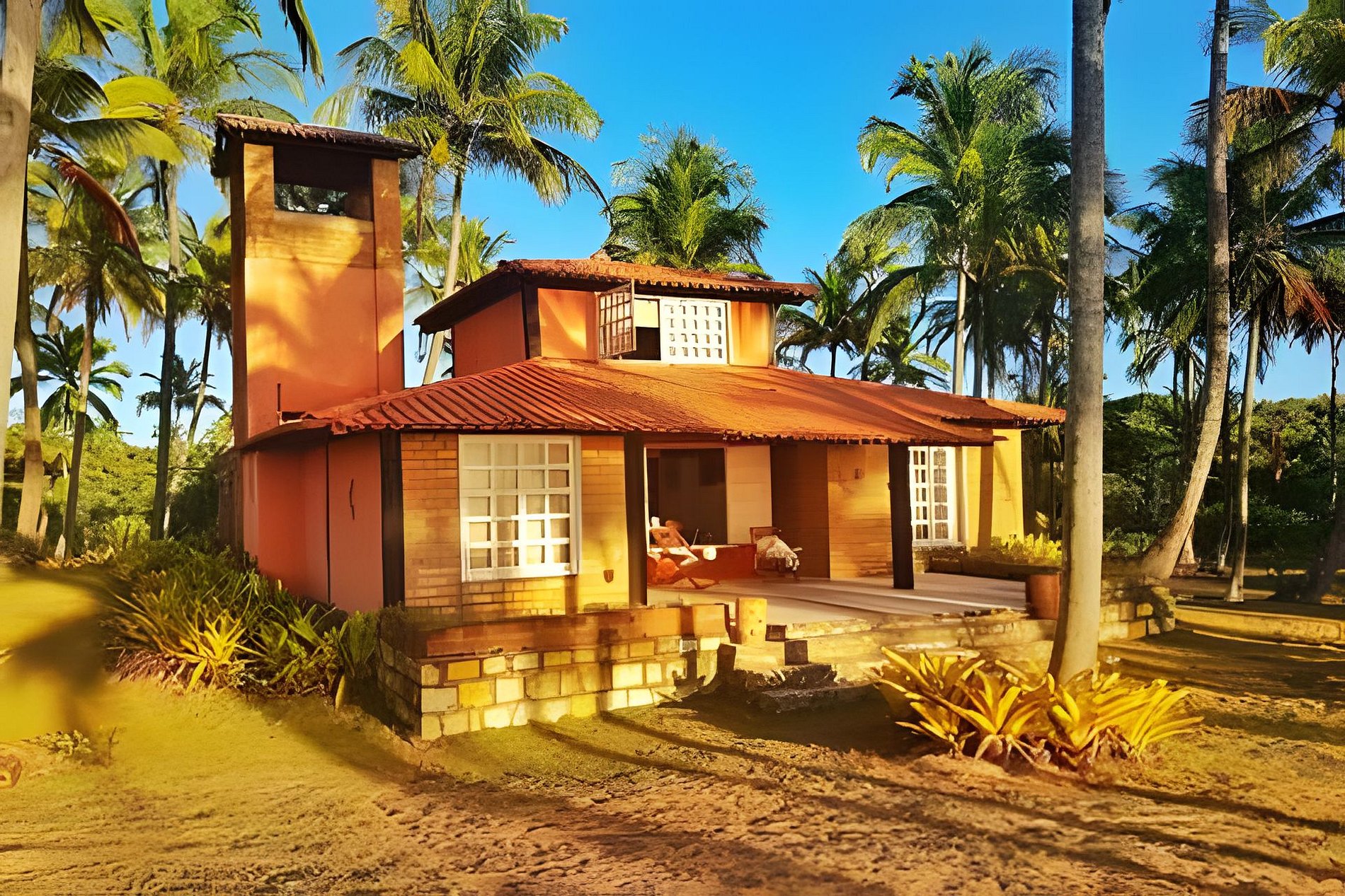 Para quem deseja a experiência de ficar à beira do mar, em meio a um coqueiral com um riozinho delicioso no fundo, com todo o conforto, a Casa Capela oferece uma hospedagem de alto padrão. A propriedade é composta por uma casa principal e um chalé, ambos prontos para acomodar famílias ou grupos de amigos que querem curtir a praia com estilo.