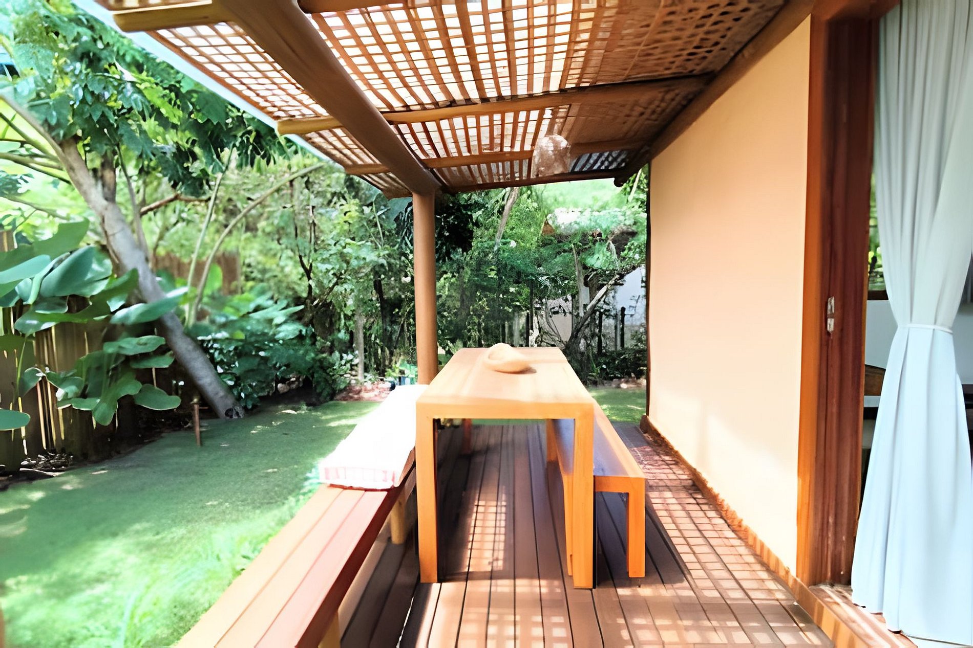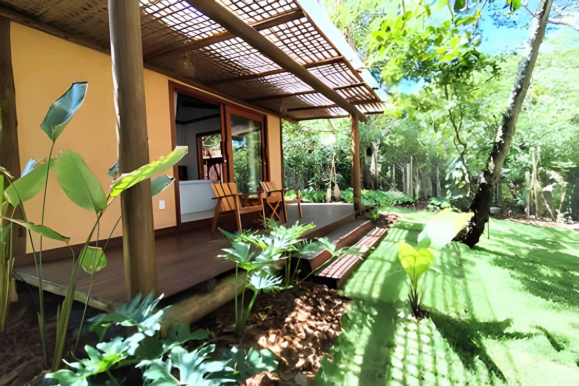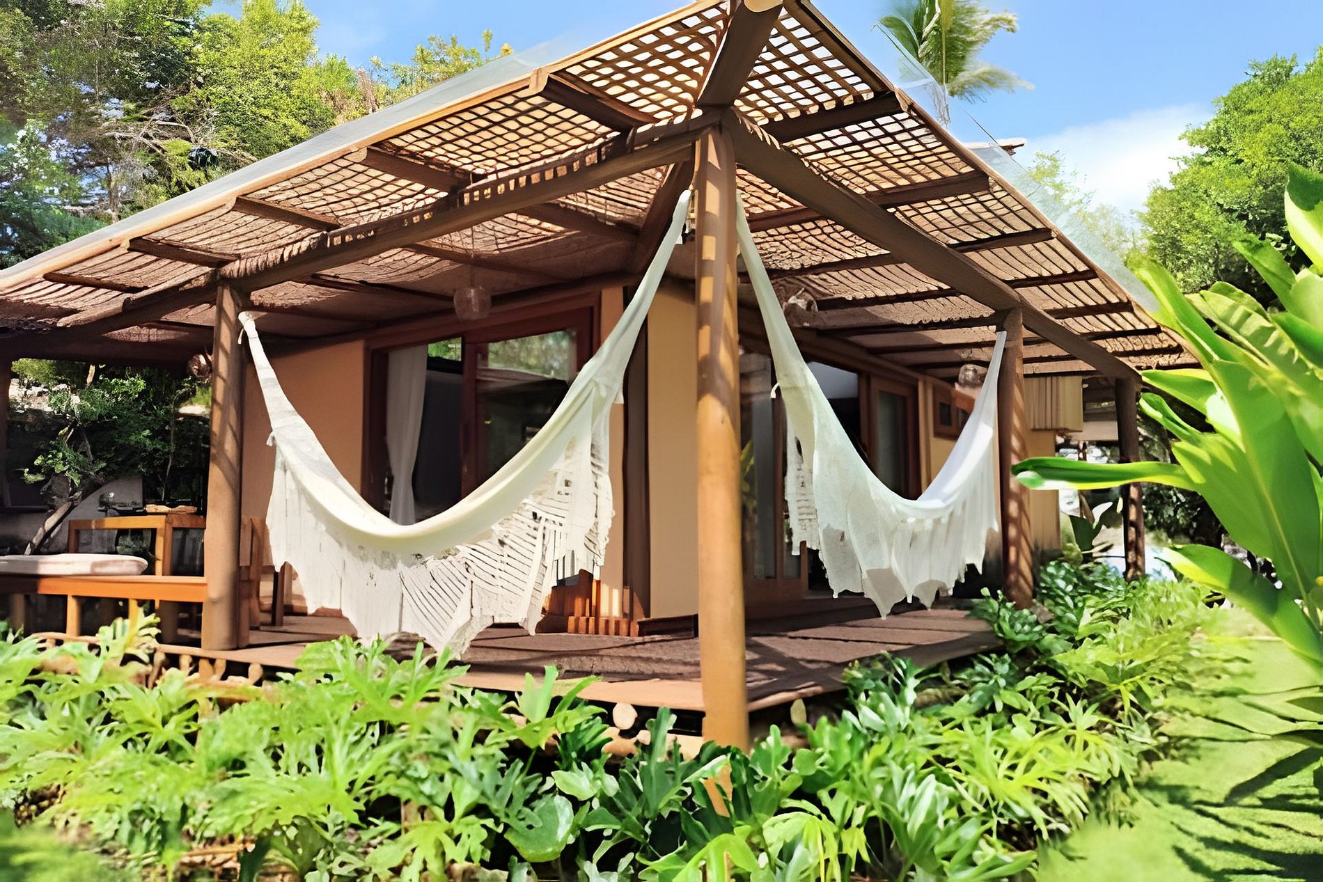 A propriedade conta com três casas exclusivas: Dendê, Araçá e Cacau, além de uma ampla área comum com quadra de beach tennis, espaço gourmet, redário, praia privativa e stand up paddle disponível. Um convite para relaxar, desconectar e viver dias inesquecíveis no litoral sul da Bahia. A Vida Cajuína fica na famosa trilha das bromélias, um lugar paradisíaco para quem gosta de conforto e contato com a natureza.
