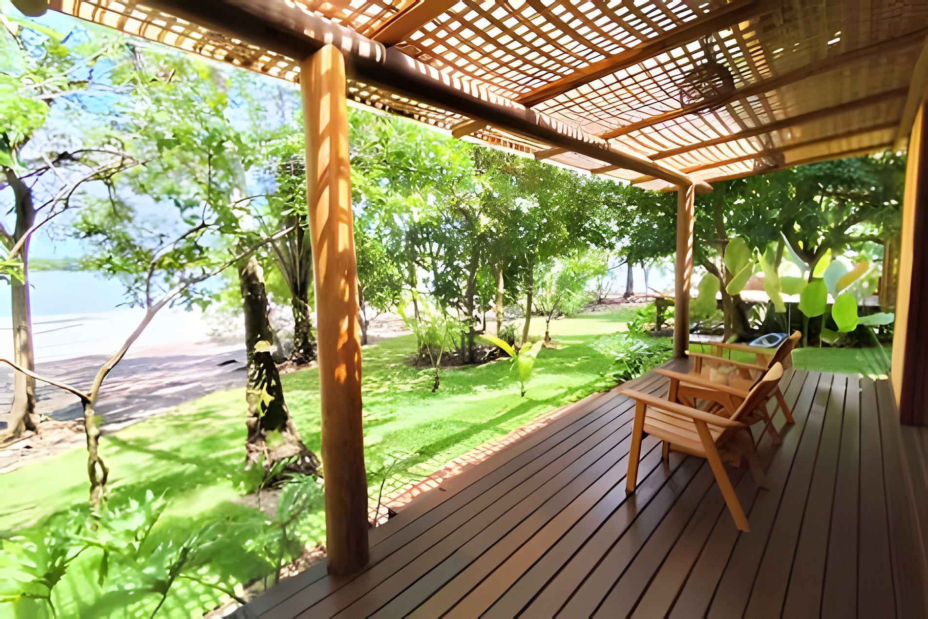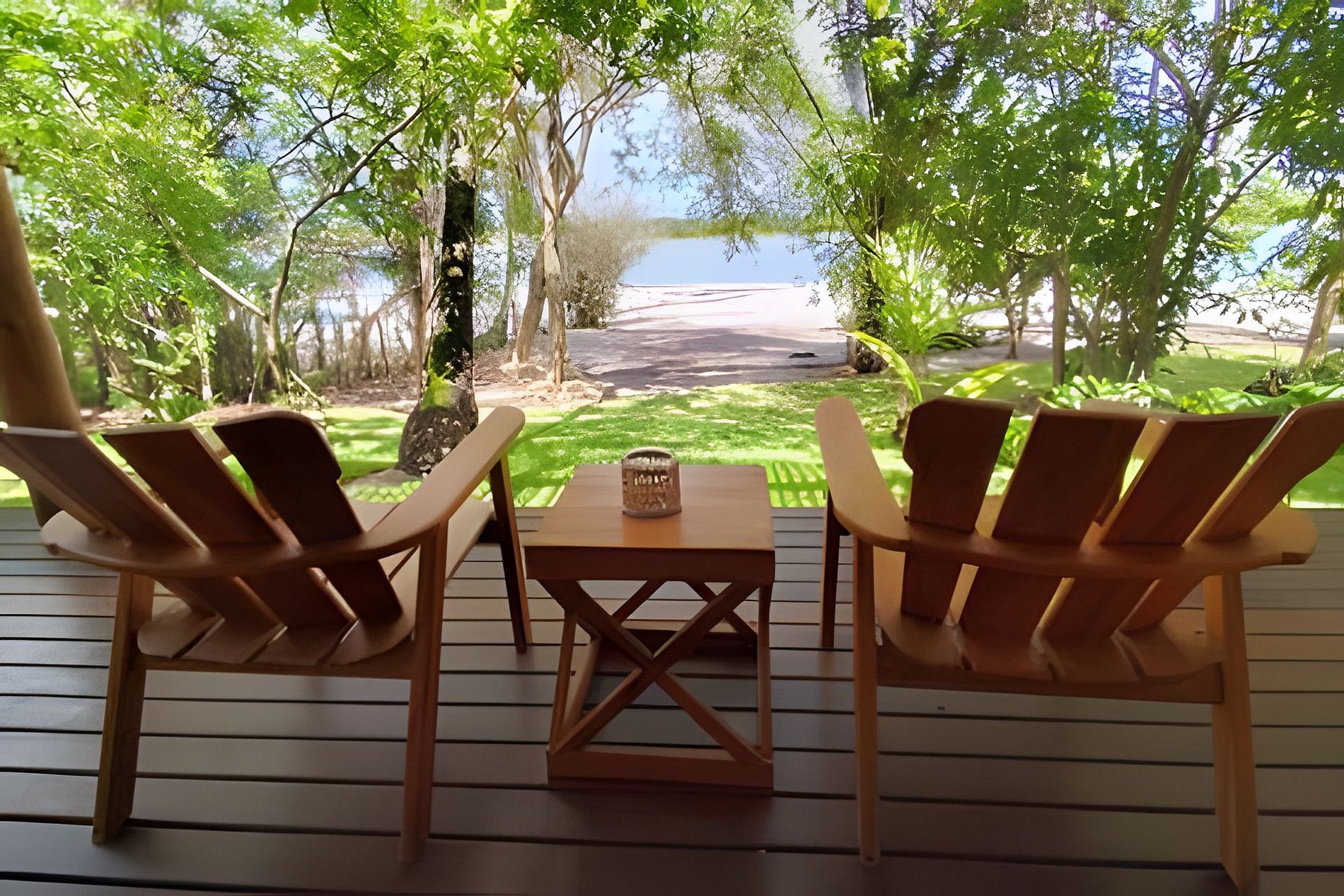 A propriedade é tanto de frente para a lagoa do Cassange quanto para o mar.